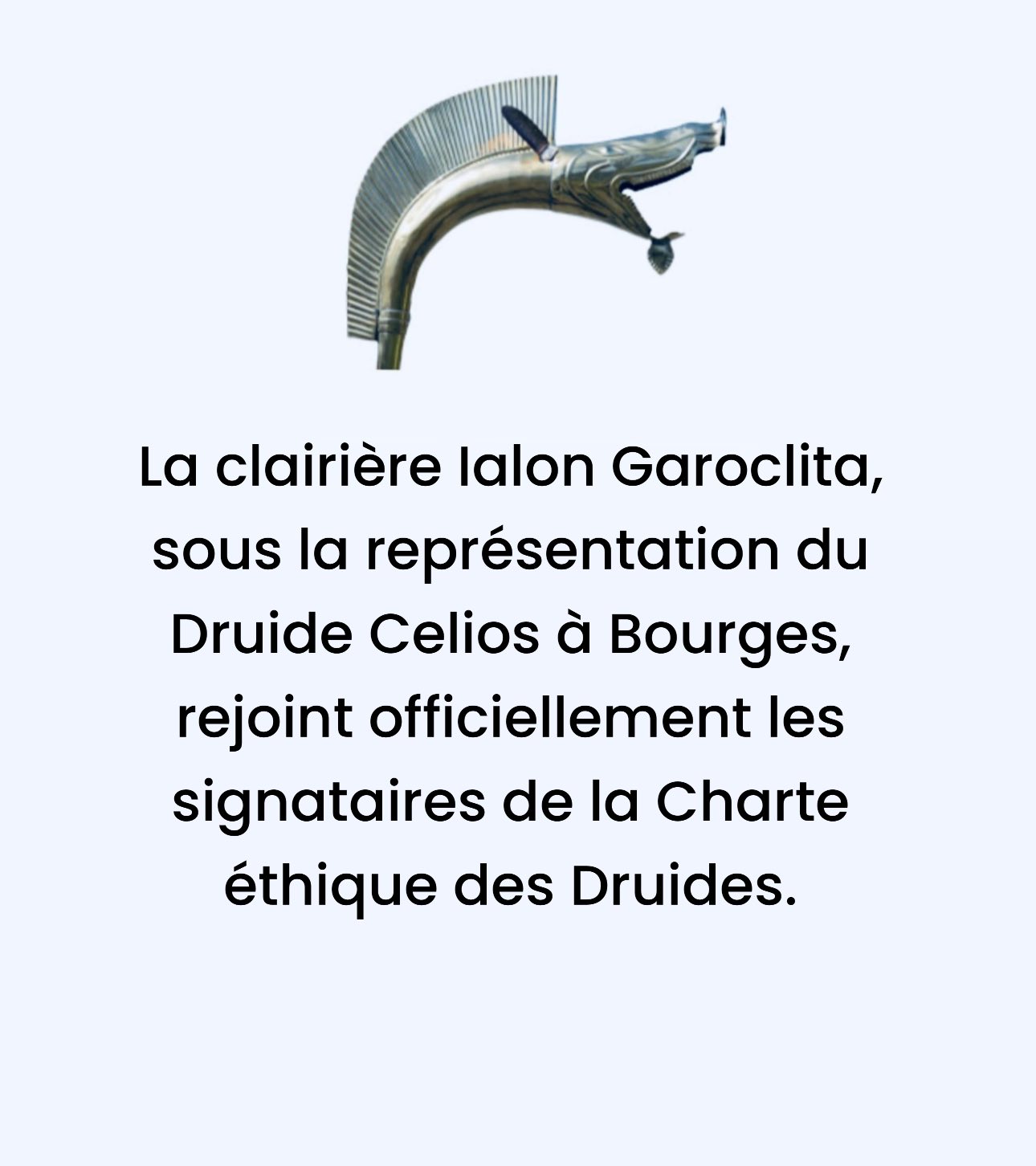 Nous avons le plaisir de vous annoncer qu'un nouveau groupe druidique rejoint officiellement les signataires de la Charte éthique des Druides. Il s'agit de la clairière Ialon Garoclita, située à Bourges et représentée par le Druide Celios.