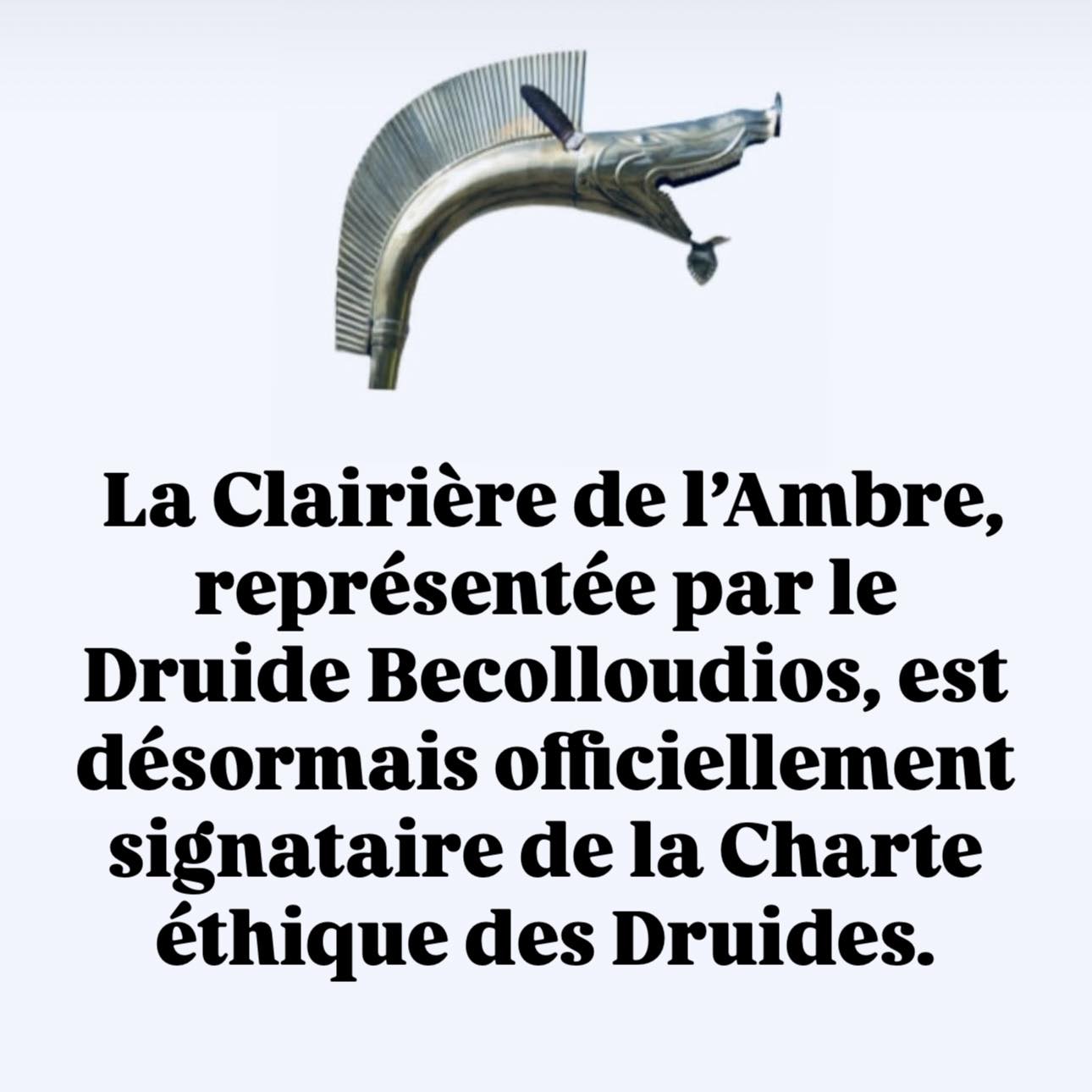 Nous avons le plaisir de vous annoncer qu'un nouveau groupe druidique rejoint officiellement les signataires de la Charte éthique des Druides. Il s'agit de la clairière de l'ambre et représentée par le Druide Becolloudios.