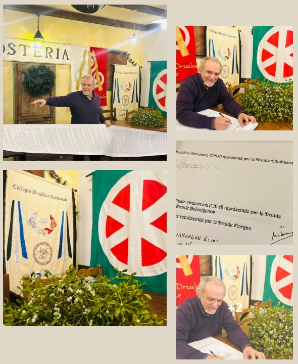 À cette occasion, la Charte des Druides — document officiel signé à Carhaix en 2024 — a été présentée afin de permettre au collège italien, initialement représenté lors de la signature officielle par la Comardiia Druuidiacta Aremorica, d'y apposer directement sa signature.